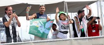 Greta Thunberg: “No permitan que el foco de atención esté puesto en mí ni en los otros voluntarios de la flotilla. La Flotilla Global Sumud se trata de solidaridad con los palestinos, de la solidaridad internacional. Y lo principal que hizo Israel no fue llevarnos ilegalmente por la fuerza en aguas internacionales y cometer abusos contra nosotros en prisión, sino detener una misión humanitaria y violar el derecho internacional al impedir la entrada de ayuda humanitaria a Gaza, una población a la que Israel está sometiendo al hambre de manera sistemática. Y esto constituye una flagrante violación del derecho internacional humanitario y marítimo”.